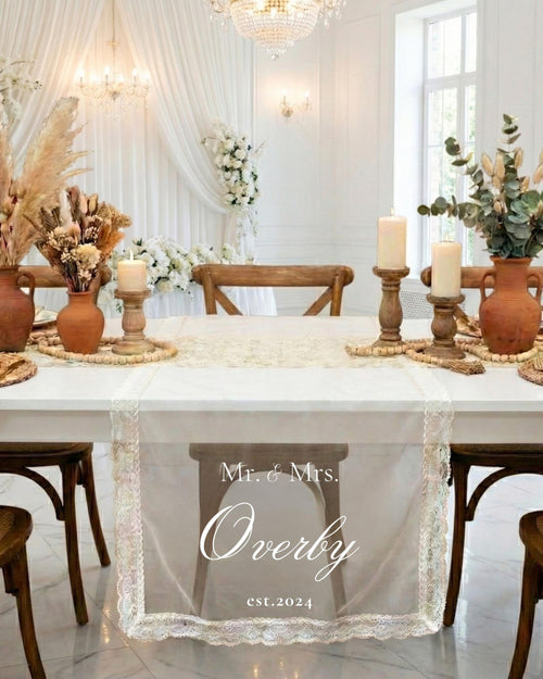Sheer Lace Wedding Welcome Sign: Tulle Fabric, Macquin Sequins with stand