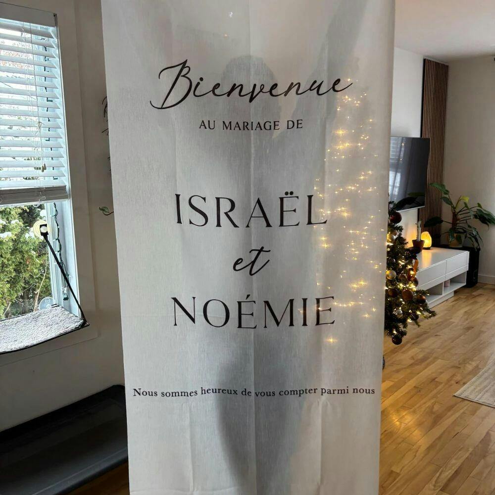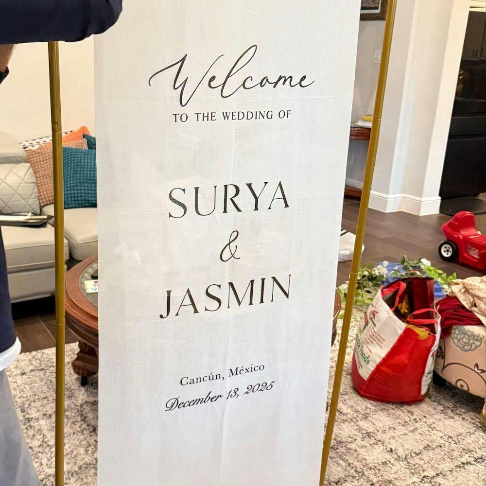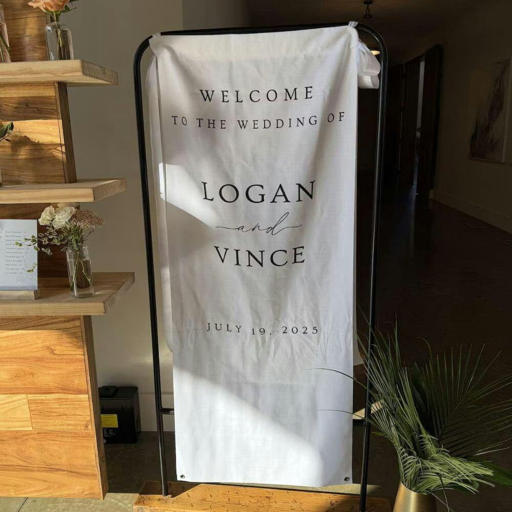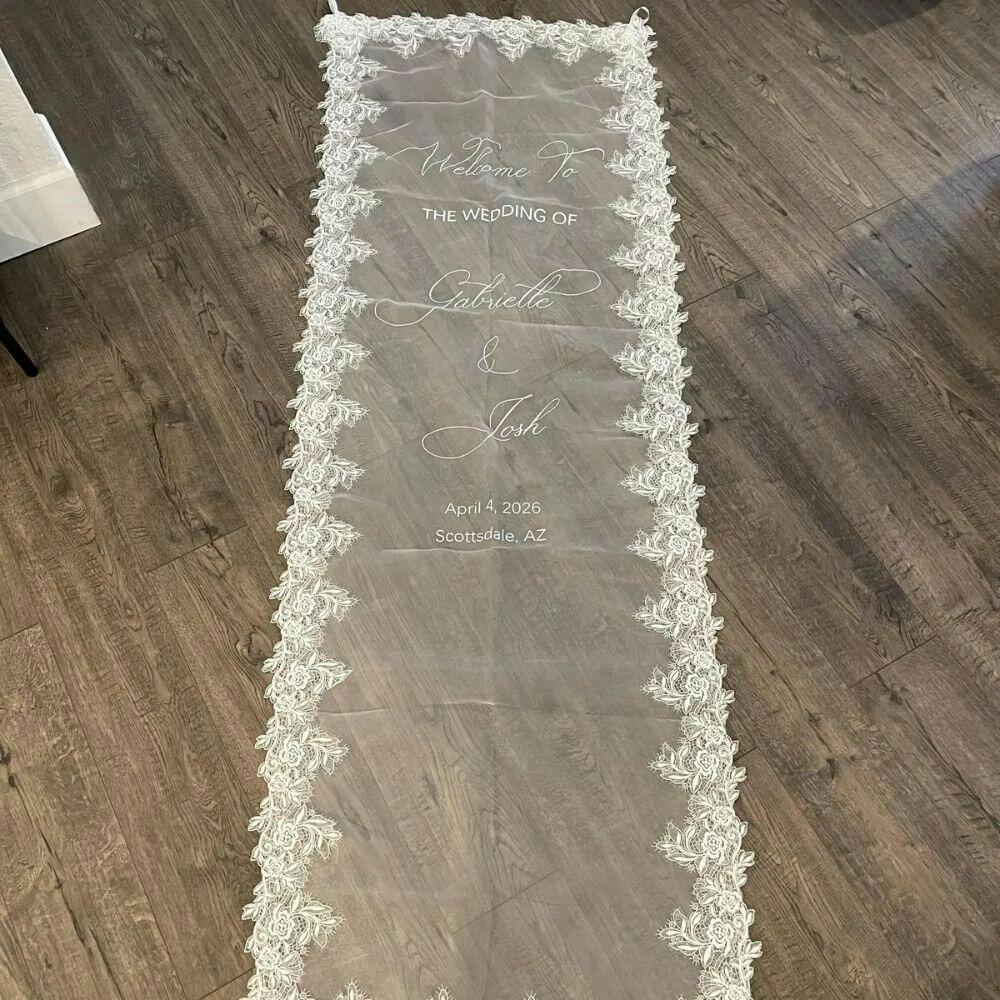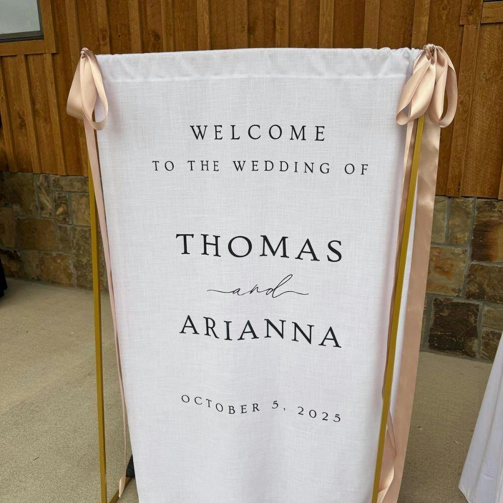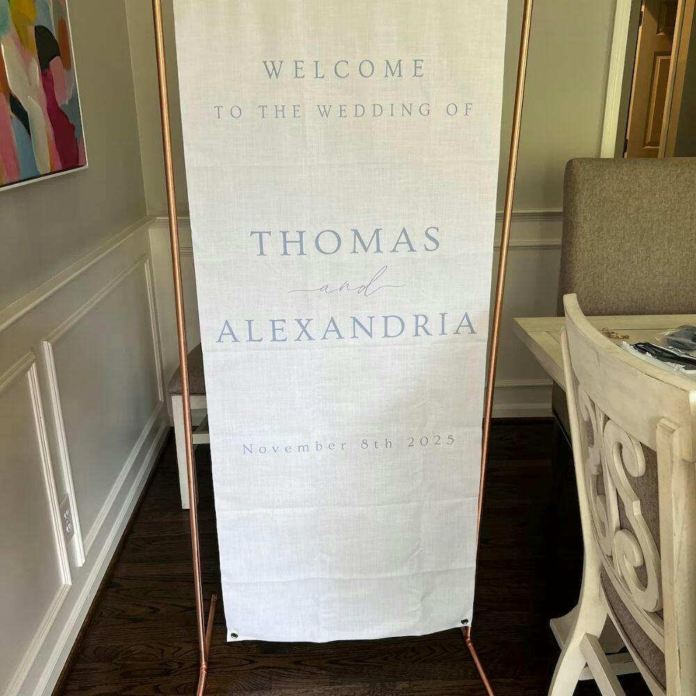 My expectations have been exceeded. The quality is lovely and the detail is beautiful. I ordered this as our wedding welcome sign on Dec 2, it delivered to my home in Chicago on Dec 29. (Be sure to this in mind when purchasing, as it is crafted and shipped from Vietnam). I ordered the largest size, it comes with two gold loop holes and long ribbon to be able to hang and display at our venue beautifully. I will steam it on the day of to remove any wrinkles from it being folded. I couldn’t be happier with this purchase and product received. 10/10 I’d reccomend to anyone.